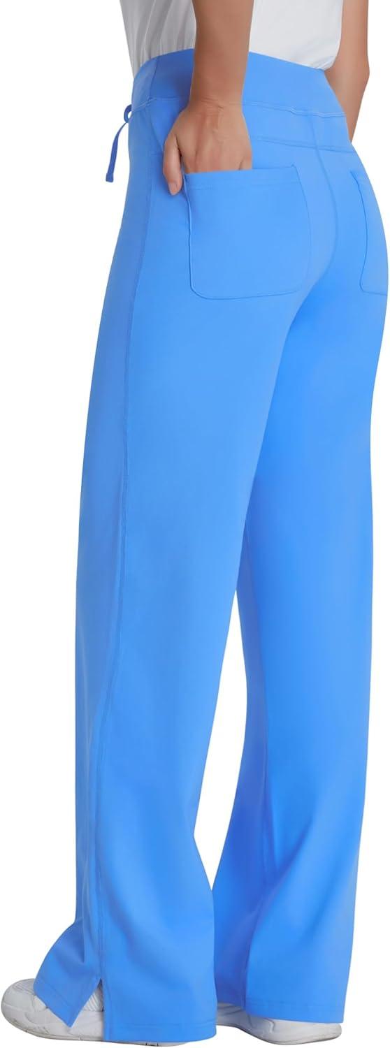 QBK Wide Leg Scrub Pants for Women – High Rise Straight Wide Leg Yoga Scrub Uniform Pants, Anti-Wrinkle & Knit Yoga Waistband(Ceil Blue)